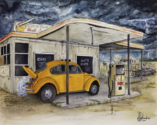Taxi At Abandoned Petrol Station